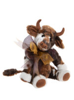 Alpine is a fully jointed plush cow. She has short super soft dense patchy plush all over in white, caramel and dark browns. She has tiny horns with an organza bow around her neck. Look for her other grazing friends Prairie and Hilltop. Suitable for ages 3 and up.