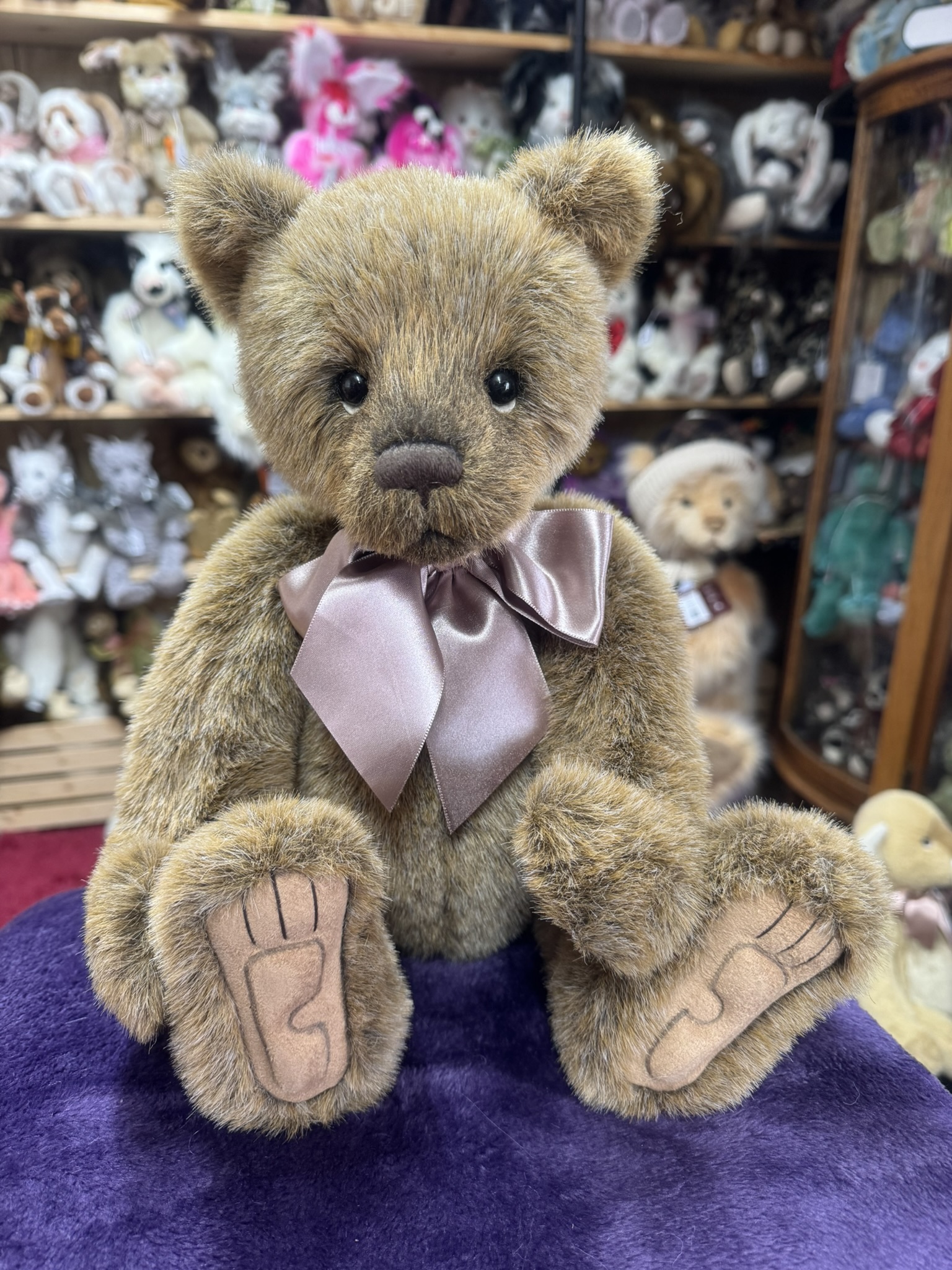 Barlow is a fully jointed bear. He has soft brown fur and a satin bow around his neck. He is part of a trio. Look for Burton and Botwood. Suitable for ages 3 and up.