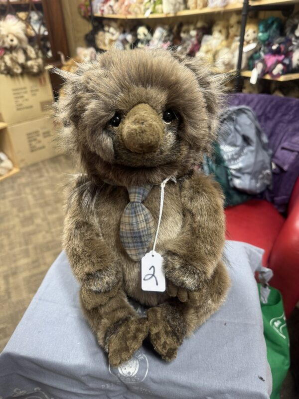 Berlin is a non-jointed Numbat plush. He is named after a world famous zoo and is an endangered species. He has beautiful golden orange belly, arms and legs and soft short tan, browns and beige plush. He has a plaid neckerchief and is machine washable. Suitable for ages 18 mth and up.
