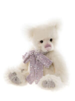 Celine is a fully jointed bear. She is part of the sensational singers set. Look for Aretha, Dolly and Mariah. She is made from Alpaca and Mohair and is white all over with a hand stitched pale pink nose and pin airbrushing around her nose and eyes. She has a purple burlap bow and heart pendant around her neck. Not suitable for under 14 years of age and surface wash with care only.