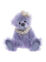 Charlie Mohair Year Bear 2024 is a fully jointed bear. She is a sweet lavender purple bear from her head to toes. She has lace around her neck and on her head.