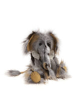 Edgar is a fully jointed plush Elephant. He is adorable with his fun, unique and quirky long plush. His colours are a patchy mix of grey, white, black, light brown and dark browns. He has light brown leather ears, tail and feet with a white organza bow. Surface washable, suitable for 3 years +