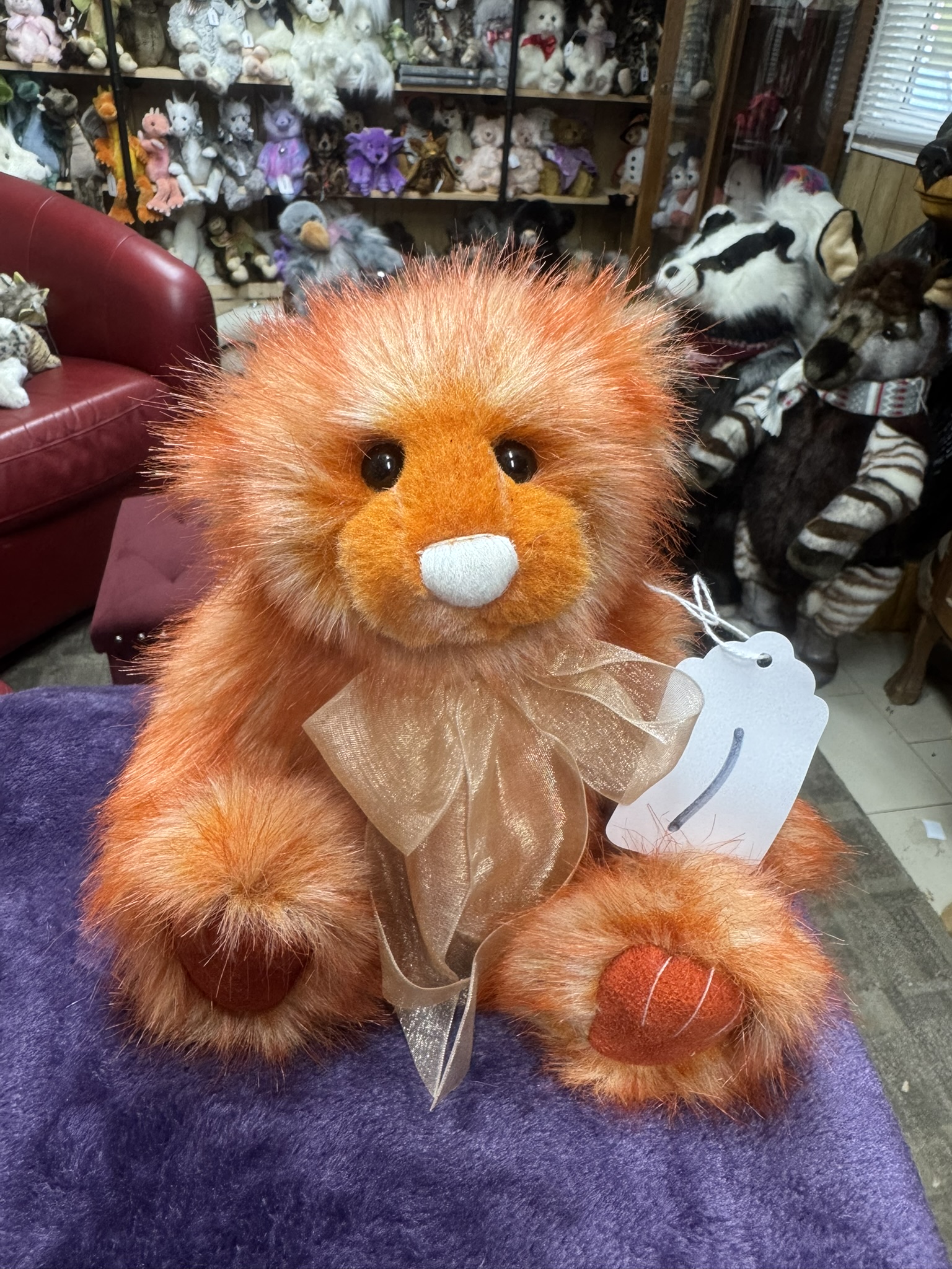 Honeycomb is a fully jointed bear. Look for her ice cream parlour friends Matcha, Teaberry and Clotted Cream. She has soft orange fur and a matching organza bow around her neck.
