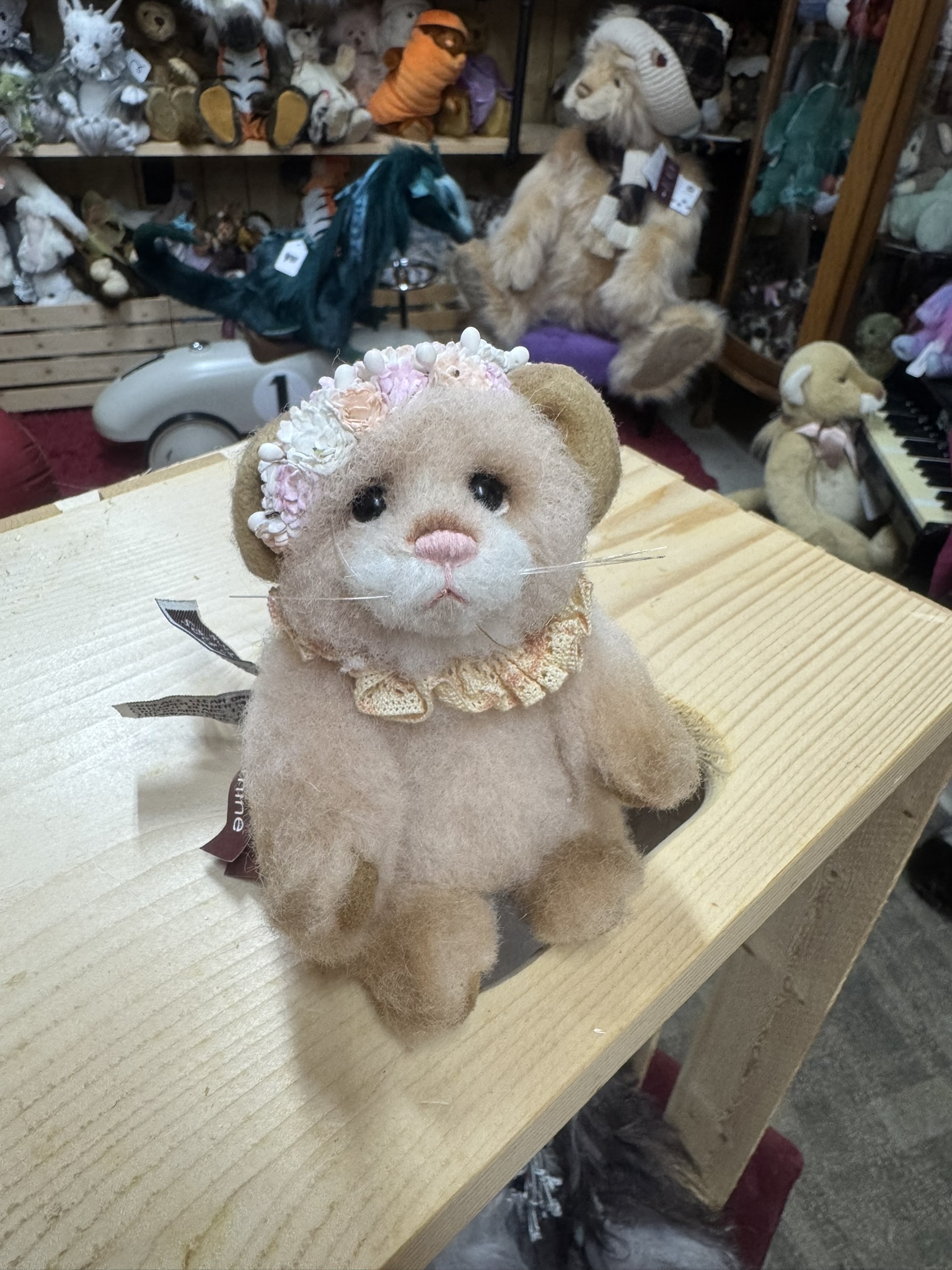 Jasmin is a fully jointed mini mouse and is part of the anything is Pawsible Collection. Her name is inspired by a British tea favourite. She has a delicate floral headdress, lace collar and beaded necklace which compliments her realistic whiskers and tail! Look for Pearl Grey her tea companion. She comes in an embroidered drawstring bag. Hand wash cool, with care. Suitable for ages 14+