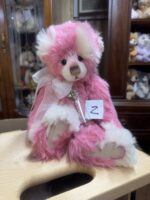 Kahlo is a fully jointed bear. She is part of the leaving their paw-prints on the world collection. She is part six of our world-renowned artists. Look for Dali, Picasso, Degas, Monet and Cassatt. She is made from Alpaca and Mohair she has dense pink cotton candy and white fur. She has a pink organza bow and a key around her neck with a hand stitched nose. Not suitable for under 14 years of age and surface wash with care only.