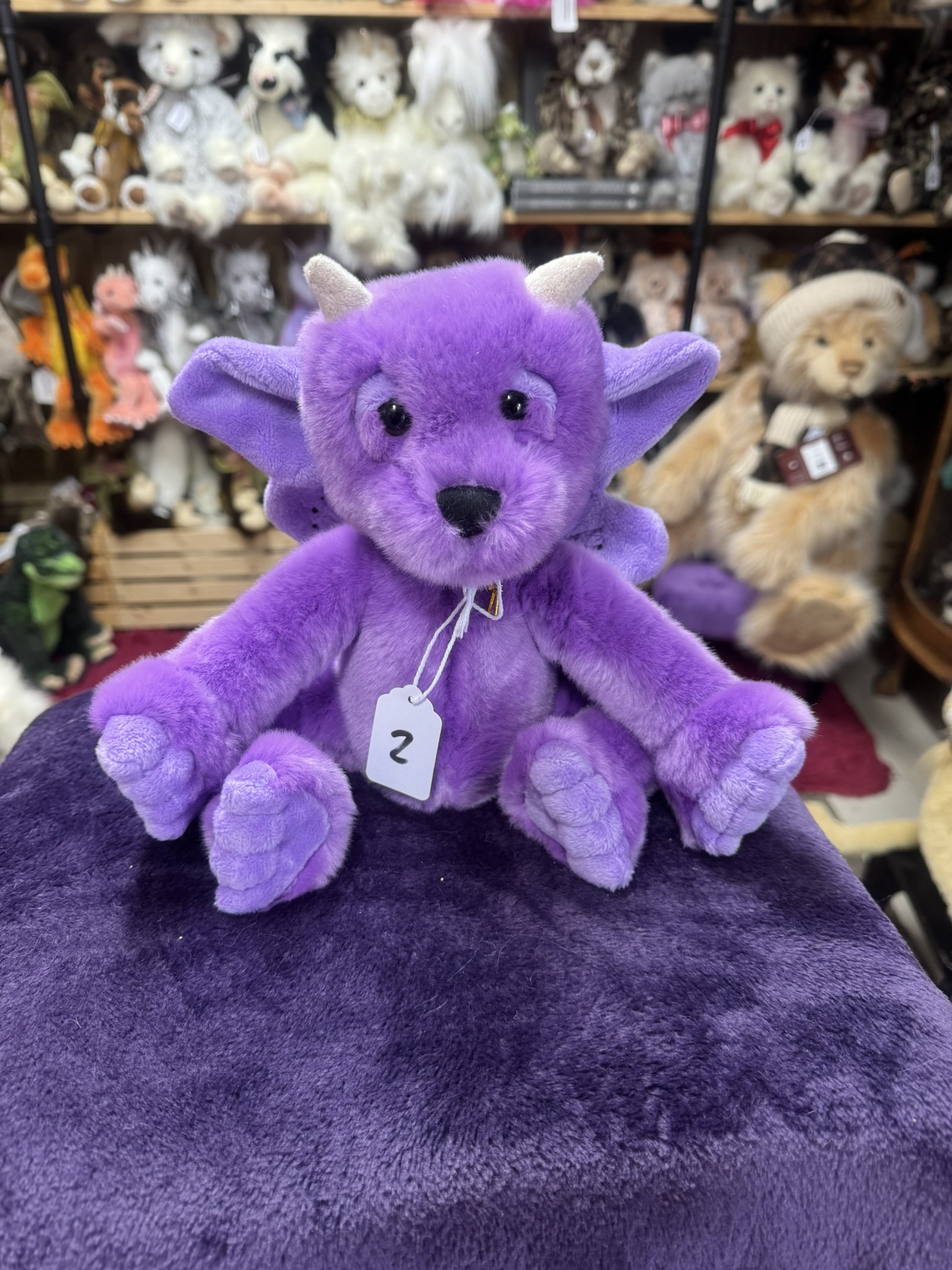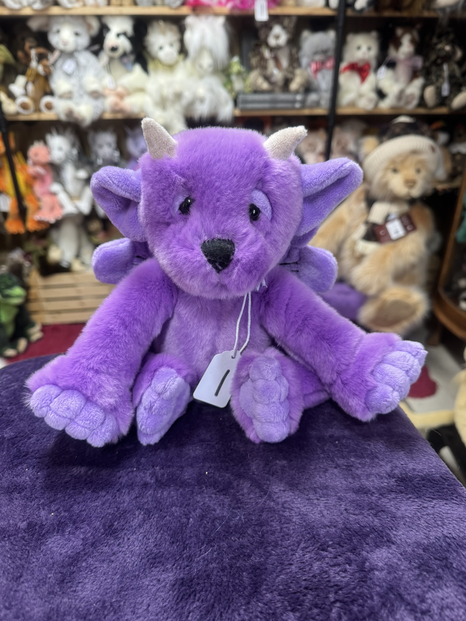 Portcuilis is a mythical non-jointed gargoyle. He is truly spellbinding with his soft royal purple plush with tiny horns and wings. He has a playful spirit, ready to explore imaginary kingdoms. Look for the other stone guardians Drawbridge, Spires, Bartizan and Moat. Machine washable and suitable for 18 months and up.
