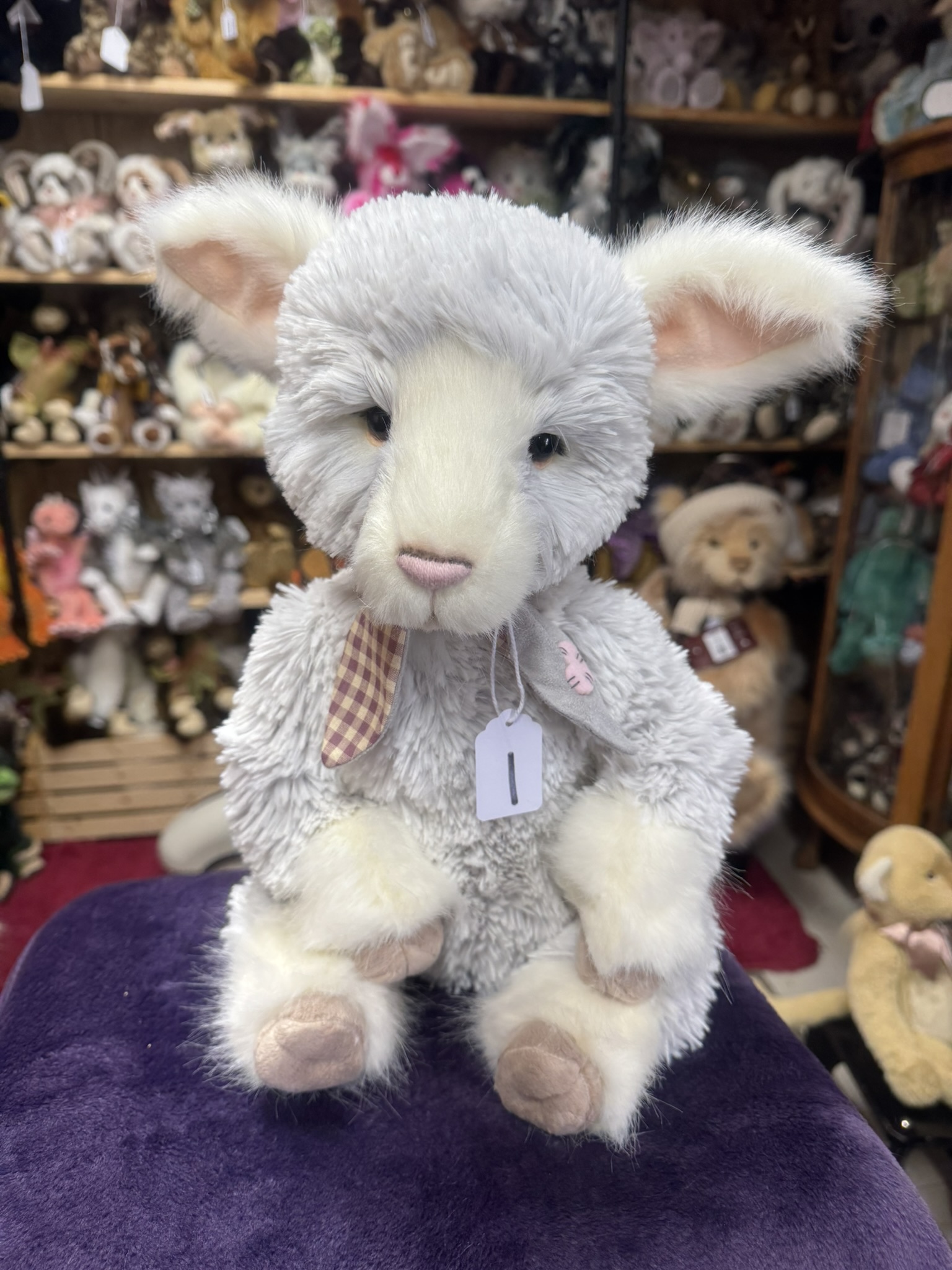 Ramsey is a fully jointed sheep. He has soft grey and white fur with a tie around his neck. Look for his other farm friends Milkshake and Old Faithful. Suitable for ages 3 and up.