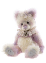 Shelley is a fully jointed bear. She is part of the leaving their paw-prints on the world collection. She is one of five of our outstanding authors. Look for Beatrix, Milne, Aesop and Barrie. She is made from Alpaca and Mohair she has a mix of purple, pink and white fur with a lace collar and head piece. She has a purple hand stitched nose and a double heart pendant around her neck. Not suitable for under 14 years of age and surface wash with care only.