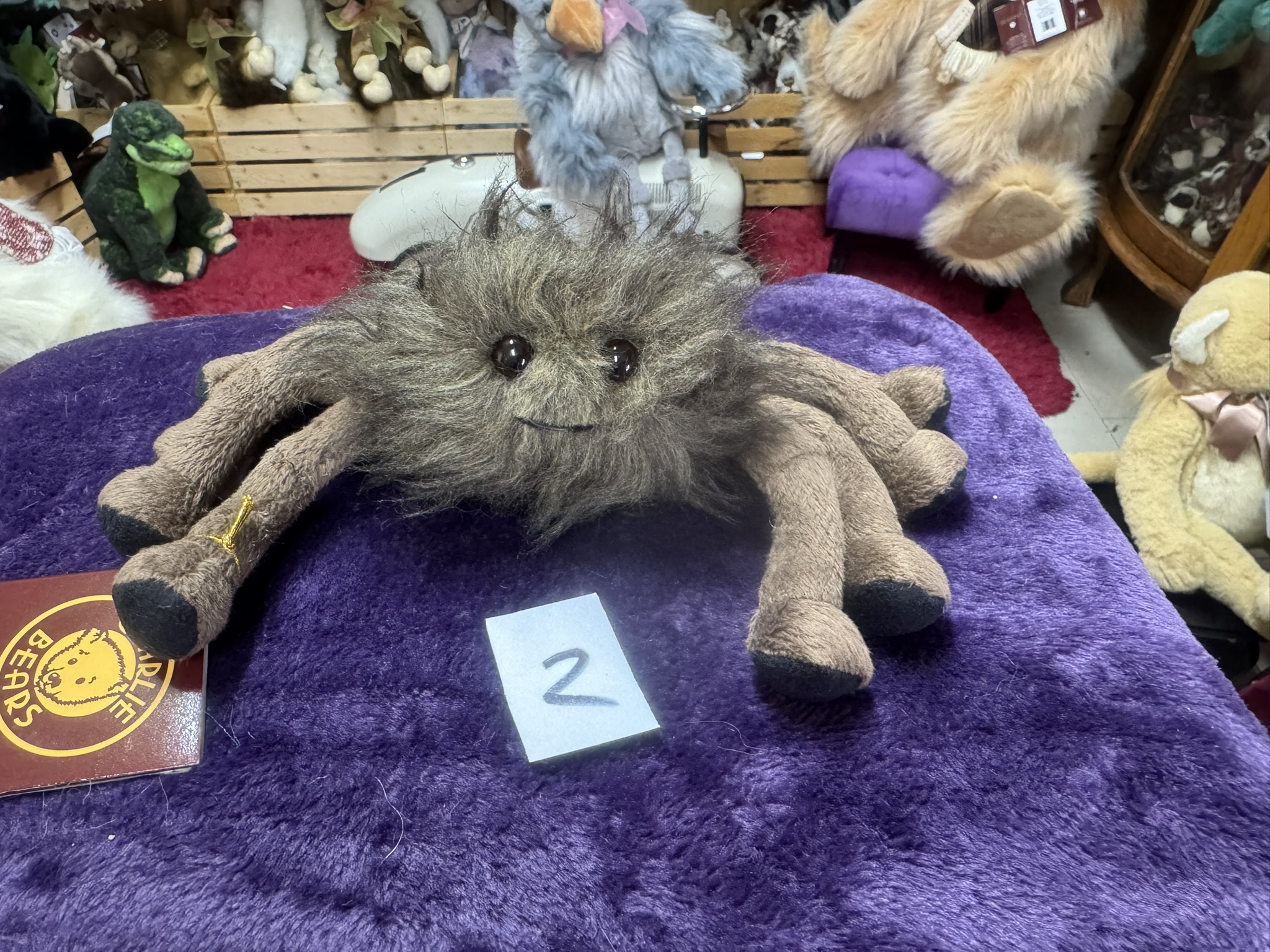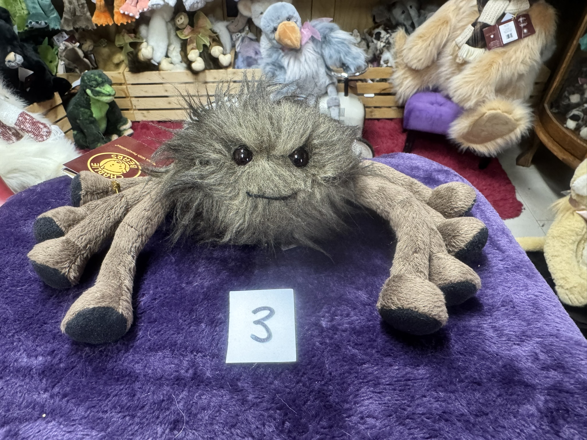 Winnie is the baby spider in The Webbers family. She is part of the monsterology series. She has pose-able legs dark brown fuzzy long fur and a cute little smile. Look for her parents The Webbers Wiley and Wendy. Suitable for ages 3 and up.
