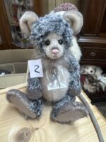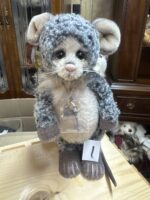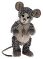 Tidy is a fully jointed standing mouse. He is part of a prim and proper pair, look for his partner Neat. He has short shadow greys and cobweb white mohair with a key pendant around his neck. His pink nose, suede tail and long whiskers add to his adorable charm. He comes with a brown canvas bag. Not suitable for under 14 years of age and surface wash with care only.