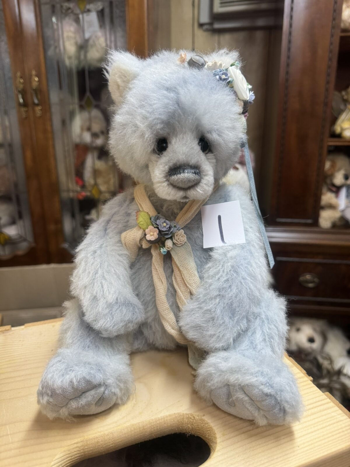 Zelena is a fully jointed bear and she comes with a blue embroidered canvas bag. She is part of a Victorian style pair and has an adorable flower crown and delicate bow around her neck. She is a lovely and sweet addition to your hug. Look for her friend Adalie. Not suitable for under 14 years of age and surface wash with care only.